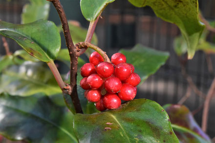 秋に霜が降りる頃、鮮紅色の実が目に付くようになります。