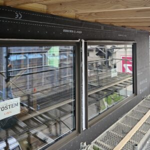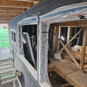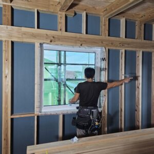 外壁の下地工事と窓の取付け。