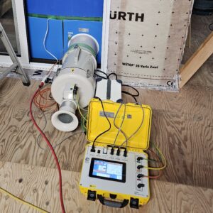住宅の隙間を専用の機械で測定し、気密性能を数値化する検査です。