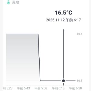 早速、朝方4℃くらいまで冷え込んだ日の室温を確認してみました。