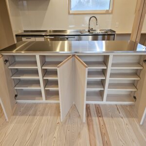作業台の下も、たっぷりとした収納スペースがあり、