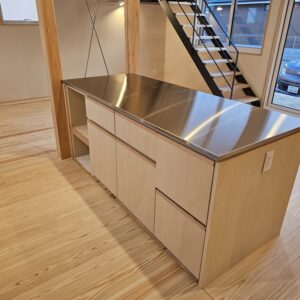 LDKには、存在感のあるステンレスの天板の作業台と